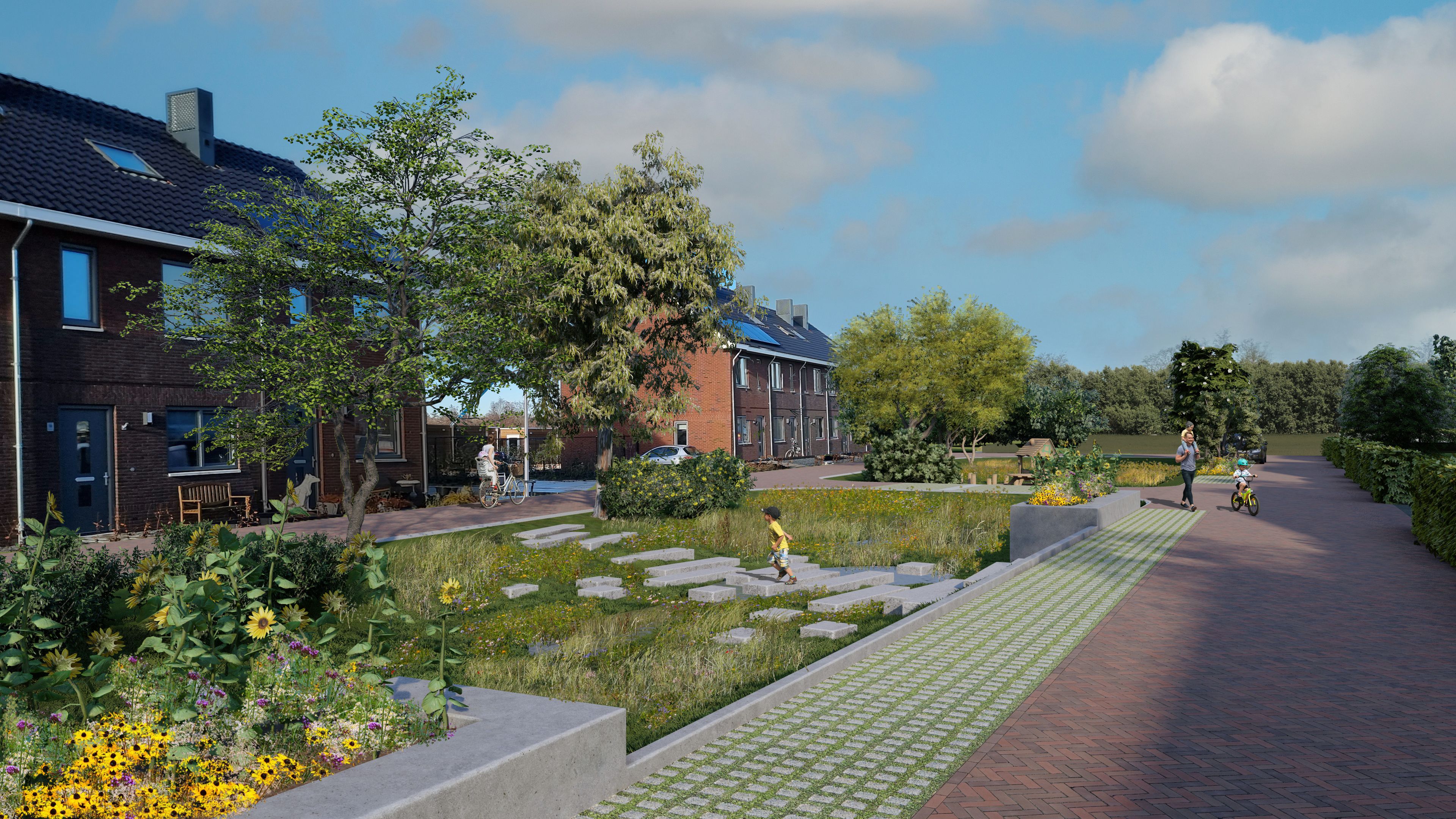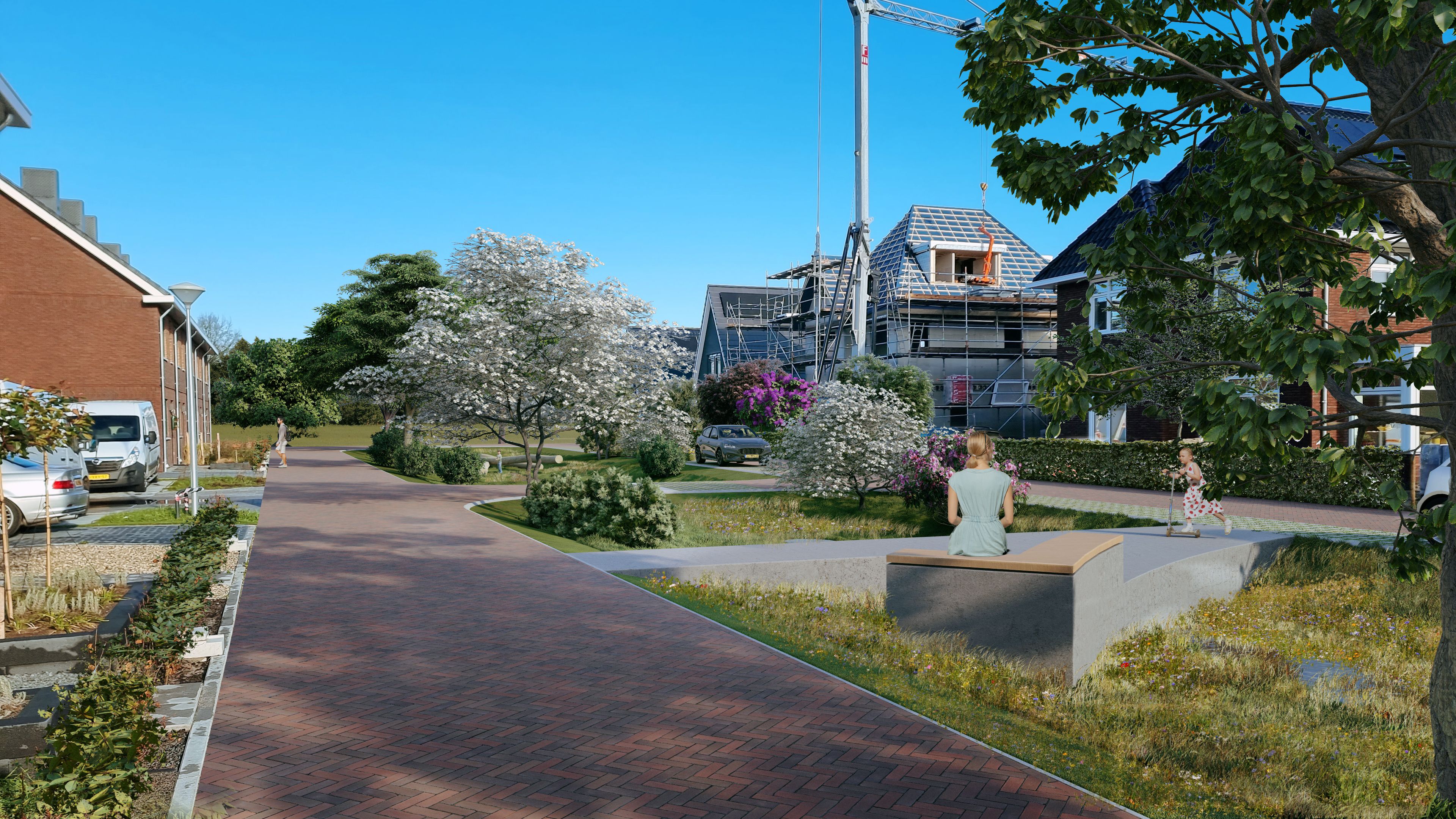 Het stedenbouwkundig ontwerp en het inrichtingsplan zijn op een natuurlijke manier met elkaar verweven. Samen met de planologische inpassing, waarvoor eveneens door ons bureau het bestemmingsplan is opgesteld, vormt dit een solide basis. Het bestemmingsplan borgt niet alleen de bouwmogelijkheden, maar ook de groenstructuur en de wateropgave. Zo groeit alles samen tot één samenhangend geheel, dat zich in de praktijk op een tastbare manier laat zien.