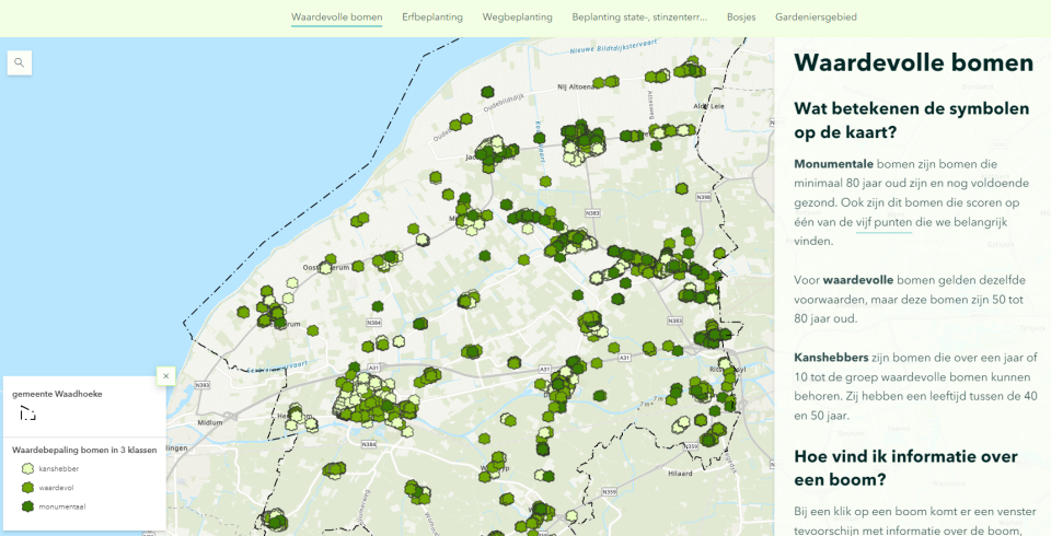 Op de projectwebsite is het resultaat van de inventarisatie gepresenteerd als interactieve kaart. Hiermee kan iedere belangstellende eenvoudig zien welke waardevolle bomen en streekeigen landschapselementen in beeld zijn gebracht.