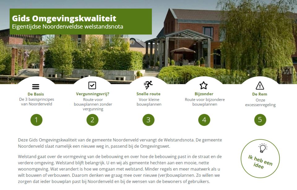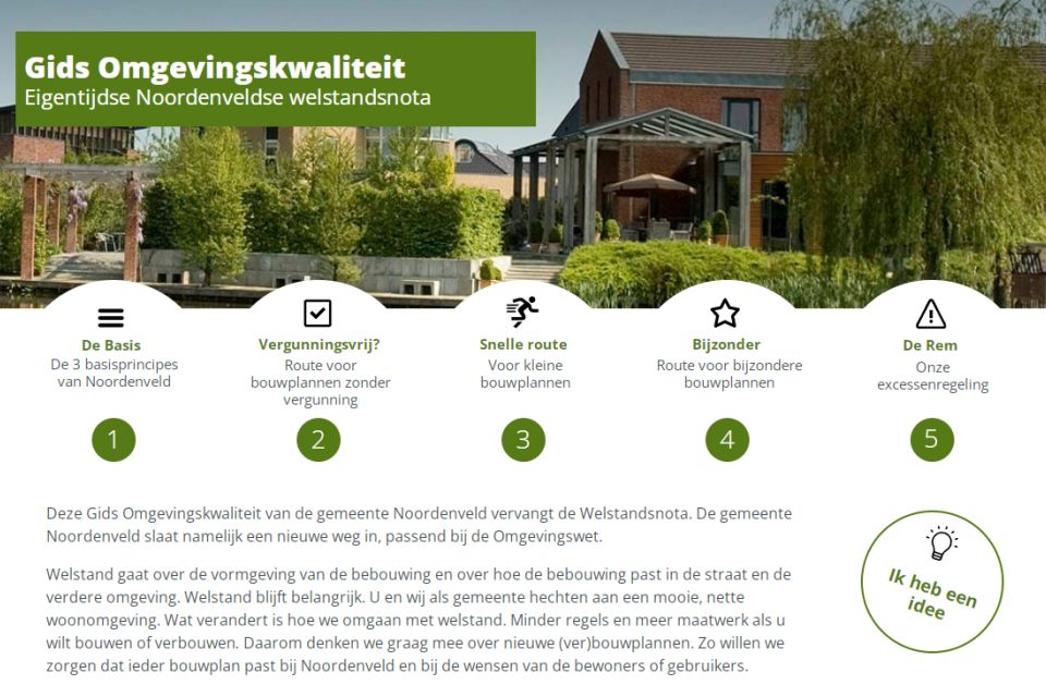 Met de Omgevingswet in aantocht wil de gemeente Noordenveld haar ruimtelijke kwaliteit goed in beeld brengen. Daarom kiest de gemeente voor een nieuwe, bredere nota Omgevingskwaliteit. Deze nieuwe, eigentijdse welstandsnota onderscheidt zich op drie vlakken en past uitstekend in het gedachtegoed van de Omgevingswet.